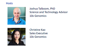 Please email christine.kao@10xgenomics.com to schedule your 1:1 session.